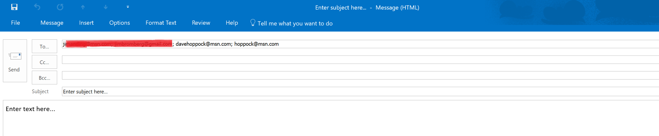 The email addresses from the names selected in the EXTRACT screen can be driven to a new Outlook email.